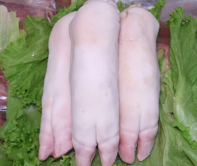 豬手,又叫豬腳、豬蹄。其分前后兩種,前蹄肉多骨少,呈直形,后蹄肉少骨稍多,呈彎形。中醫認為豬蹄性平,味甘咸,是一種類似熊掌的美味菜肴及治病“良藥”。